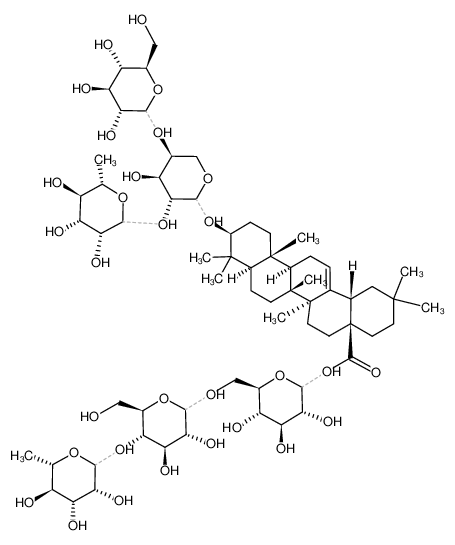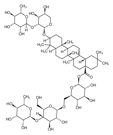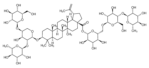 3β-[(O-α-L-rhamnopyranosyl-(1→2)-O-[β-D-glucopyranosyl-(1→4)]-α-L-arabinopyranosyl)oxy]lup-20(29)-en-28-oic acid 28-O-α-L-rhamnopyranosyl-(1→4)-O-β-D-glucopyranosyl-(1→6)-β-D-glucopyranosyl ester