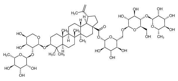 3β-[(O-β-D-glucopyranosyl-(1→3)-α-L-rhamnopyranosyl-(1→2)-α-L-arabinopyranosyl)]lup-20(29)-en-28-oic-acid 28-O-α-L-rhamnopyranosyl-(1→4)-β-D-glucopyranosyl-(1→6)-β-D-glucopyranosyl ester